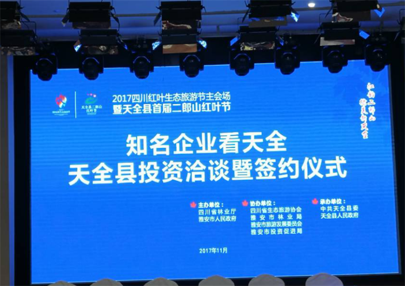11月9日,雅安市交通建設(shè)(集團)有限責任公司董事長漆家華,總經(jīng)理羅倫全、副總經(jīng)理鐘焱宇參加“知名企業(yè)看天全”2017天全縣投資洽談暨簽約儀式。