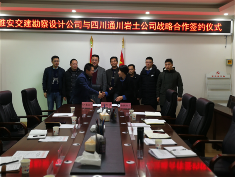 3月7日,雅安交建集團勘察設(shè)計有限公司與四川省通川巖土工程技術(shù)開發(fā)有限責任公司就公路行業(yè)領(lǐng)域公路工程(勘察、設(shè)計)、地質(zhì)災害治理(勘查、設(shè)計)等業(yè)務范圍內(nèi)的各個方面展開多層次、全方位的合作洽談,并簽訂了戰(zhàn)略合作協(xié)議。集團公司副總經(jīng)理、勘察設(shè)計公司執(zhí)行董事兼總經(jīng)理丁春、四川省交通運輸廳公路規(guī)劃勘察設(shè)計研究院經(jīng)營處處長邱毅、四川省通川巖土公司總經(jīng)理牟琦等相關(guān)人員出席了簽約儀式。