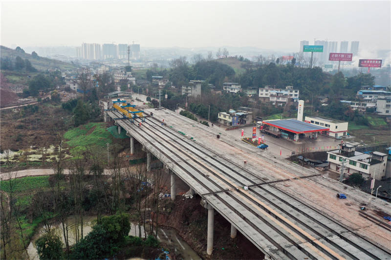 黑碾子大橋是雨名快速通道項(xiàng)目3座橋梁之一,另有成雅跨線大橋、丁家壩大橋。目前成雅跨線大橋已完成主橋掛籃拼裝,正在掛籃進(jìn)行全封閉防護(hù)。丁家壩大橋及黑碾子大橋預(yù)制梁架設(shè)已全部完成,正在進(jìn)行橋面系施工。橋梁建設(shè)有序推進(jìn),為項(xiàng)目如期建成通車打下堅(jiān)實(shí)基礎(chǔ)。