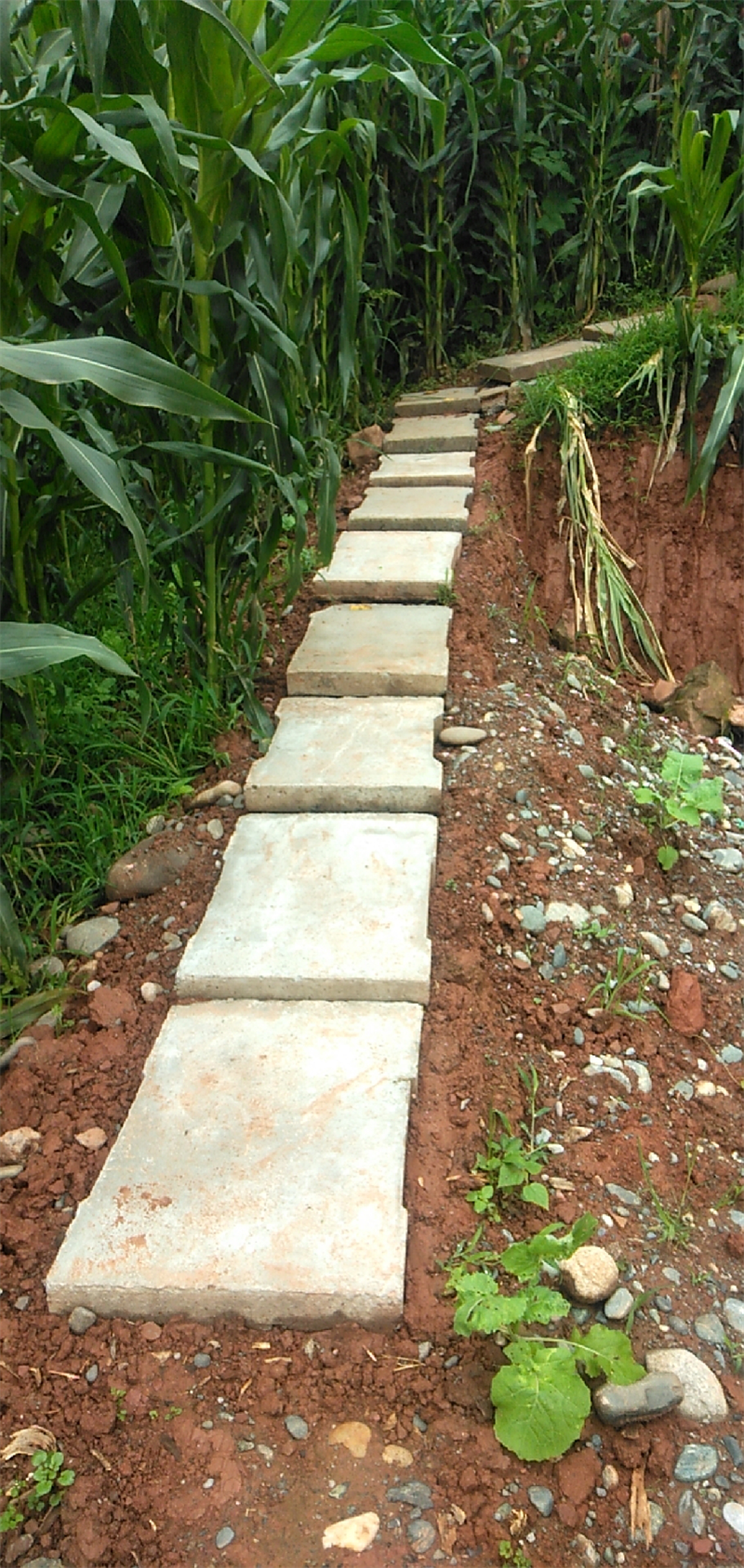 在蘆山縣佛圖山項(xiàng)目建設(shè)中,路橋公司蘆山寶興片區(qū)臨時(shí)黨支部了解到此處有一段便道坑洼不平,遇到雨季道路泥濘,嚴(yán)重影響村民的生活和生產(chǎn),且存在一定的安全隱患。為此,臨時(shí)黨支部主動(dòng)提出要為群眾修補(bǔ)便道,原本只是一個(gè)帶斜角的陡坡,通過加蓋水泥預(yù)制板臺階,便道變得平整起來。考慮到出行的方便性,還將便道與通村馬路連接在一起,受到當(dāng)?shù)匕傩盏母叨荣潛P(yáng),群眾出行難題得到有效解決。