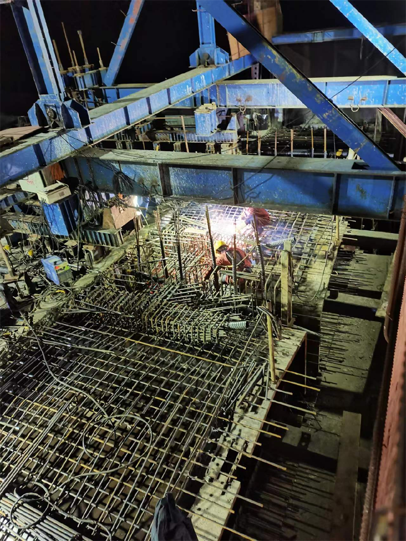 為確保項(xiàng)目高效推進(jìn),交建路橋搶抓黃金工期,共投入14臺(tái)設(shè)備、70余人,加班加點(diǎn)、挑燈夜戰(zhàn)綁扎K3+415成雅高速跨線大橋邊跨現(xiàn)澆段鋼筋。工地現(xiàn)場(chǎng)燈火通明,機(jī)械轟鳴,施工人員揮汗如雨,一派繁忙景象,工程建設(shè)井然有序。此次搶工,為后續(xù)項(xiàng)目施工積蓄了發(fā)展動(dòng)能,同時(shí)也保障了項(xiàng)目總體目標(biāo)的實(shí)現(xiàn)。