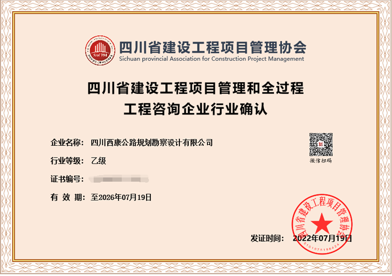 日前,經(jīng)四川省建設(shè)工程項(xiàng)目管理協(xié)會(huì)評(píng)審,交建集團(tuán)四川西康公路規(guī)劃勘察設(shè)計(jì)有限公司獲得“四川省建設(shè)工程項(xiàng)目管理和全過(guò)程工程咨詢企業(yè)行業(yè)乙級(jí)資格”確認(rèn),成為四川省內(nèi)為數(shù)不多獲得開(kāi)展全過(guò)程項(xiàng)目管理和咨詢資質(zhì)企業(yè)之一。