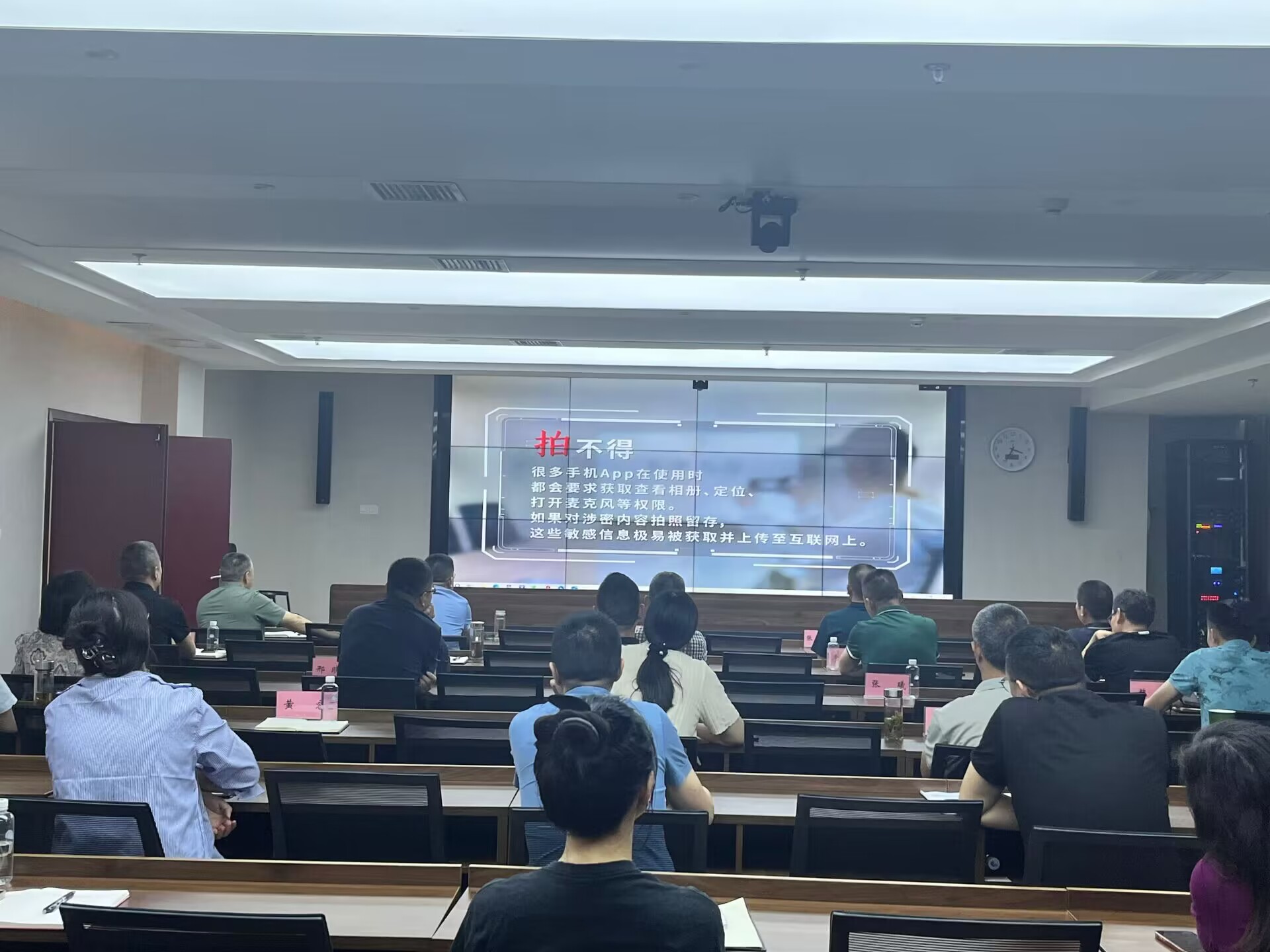 一是普及知識,營造氛圍。全體參與人員對新修訂頒布《中華人民共和國保守國家秘密法》的重要意義、精神實質(zhì)和主要內(nèi)容進行了認真學習,深刻領(lǐng)會保守國家秘密的現(xiàn)實意義,營造了學法、守紀、保密的良好氛圍;二是以案釋法,樹立意識。集中觀看了《把好手機“保密關(guān)”》等保密宣傳教育片,用鮮活的案例,告誡大家要筑牢思想防線,樹立“國家秘密無小事”的保密意識,提高保密工作的責任感和使命感;三是交流互動,凝聚共識。在交流發(fā)言中大家紛紛表示,在今后的工作中要嚴守保密防線,強化保密意識,及時把學習成果轉(zhuǎn)化為抓牢保密工作的能力,嚴格遵守保密條例,堅決與危害國家安全的行為作斗爭,杜絕泄密現(xiàn)象發(fā)生。