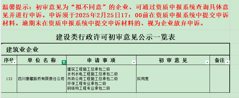 近日,在四川省住房和城鄉(xiāng)建設廳印發(fā)的《關于建設類企業(yè)行政許可事項初審意見的公示》中,路橋公司順利通過11項重要資質延續(xù)初審,全面鞏固了企業(yè)綜合競爭力。
