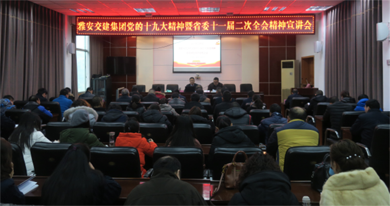 1月5日下午,市交建集團(tuán)舉行專題宣講會,集中學(xué)習(xí)黨的十九大暨省委十一屆二次全會精神。會議邀請雅安市委黨校副校長楊國先同志作專題輔導(dǎo),集團(tuán)公司黨委書記、董事長漆家華主持輔導(dǎo)會并講話,交建集團(tuán)全體黨員、經(jīng)營班子成員、中層干部參加學(xué)習(xí)。