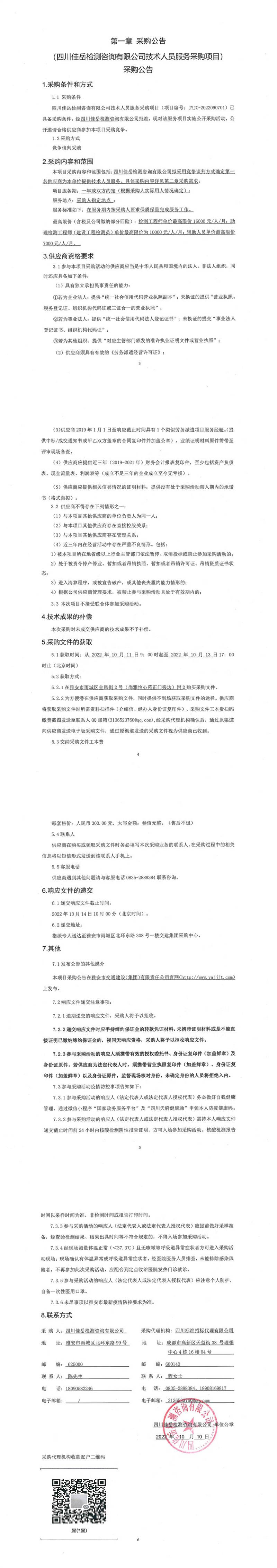 四川佳岳檢測(cè)咨詢有限公司技術(shù)人員服務(wù)采購(gòu)項(xiàng)目采購(gòu)公告