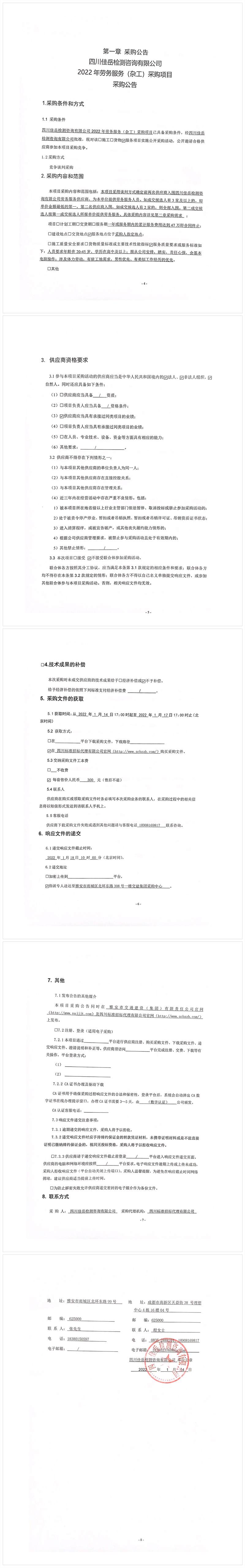 四川佳岳檢測(cè)咨詢有限公司2022年勞務(wù)服務(wù)(雜工)采購(gòu)項(xiàng)目采購(gòu)公告