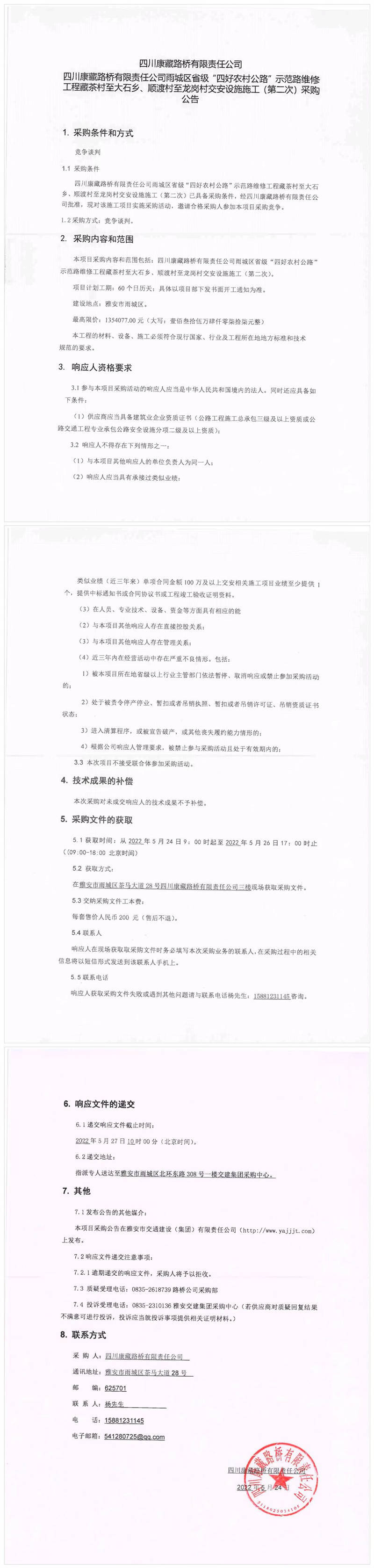 四川康藏路橋有限責(zé)任公司雨城區(qū)省級(jí)“四好農(nóng)村公路”示范路維修工程藏茶村至大石鄉(xiāng)、順渡村至龍崗村交安設(shè)施施工(第二次)采購(gòu)公告
