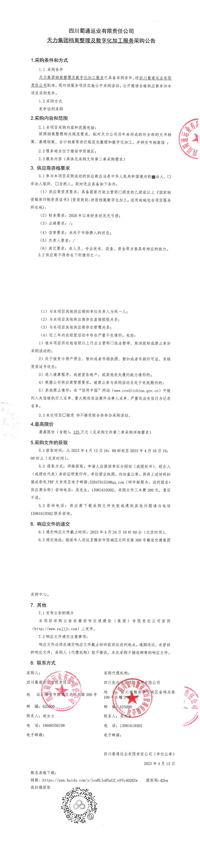 四川蜀通運業(yè)有限責(zé)任公司天力集團檔案整理及數(shù)字化加工服務(wù)采購公告