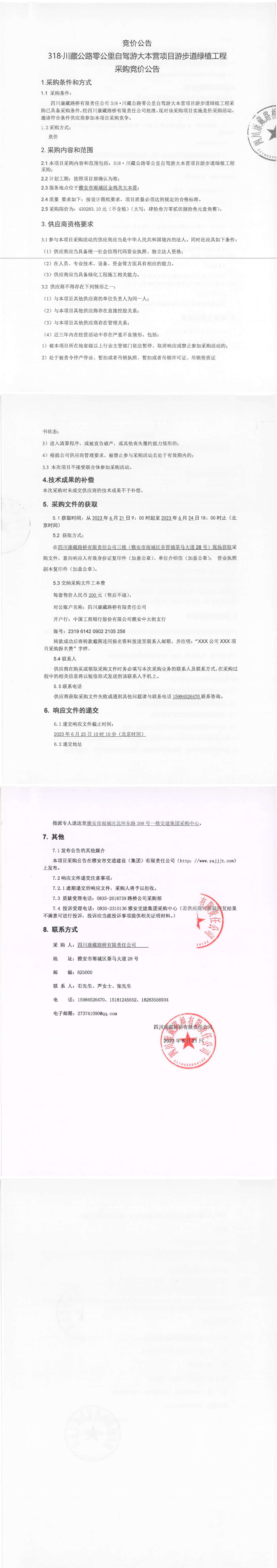 四川康藏路橋有限責(zé)任公司318·川藏公路零公里自駕游大本營項(xiàng)目游步道綠植工程采購競價(jià)公告
