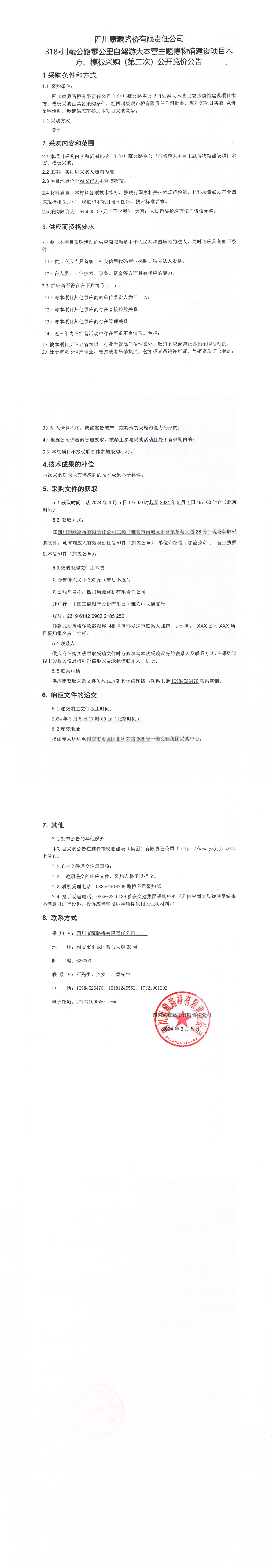 四川康藏路橋有限責任公司318·川藏公路零公里自駕游大本營主題博物館建設(shè)項目木方、模板采購(第二次)公開競價公告