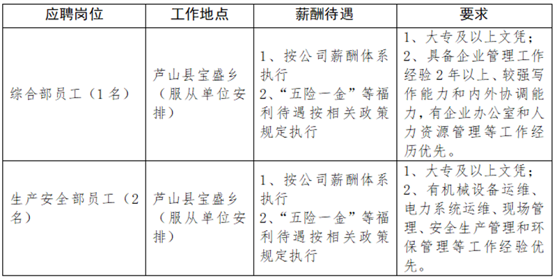 雅安交建集團云石建材有限公司關(guān)于招聘工作人員的公告