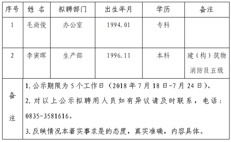 通過公開報名、資格審查、面試等程序,經公司研究確定以下