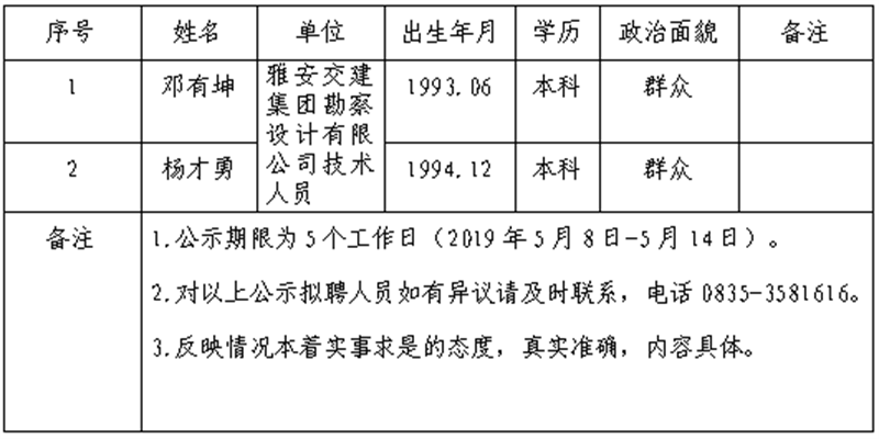 雅安交建集團子公司擬聘用人員公示(勘察設(shè)計公司)