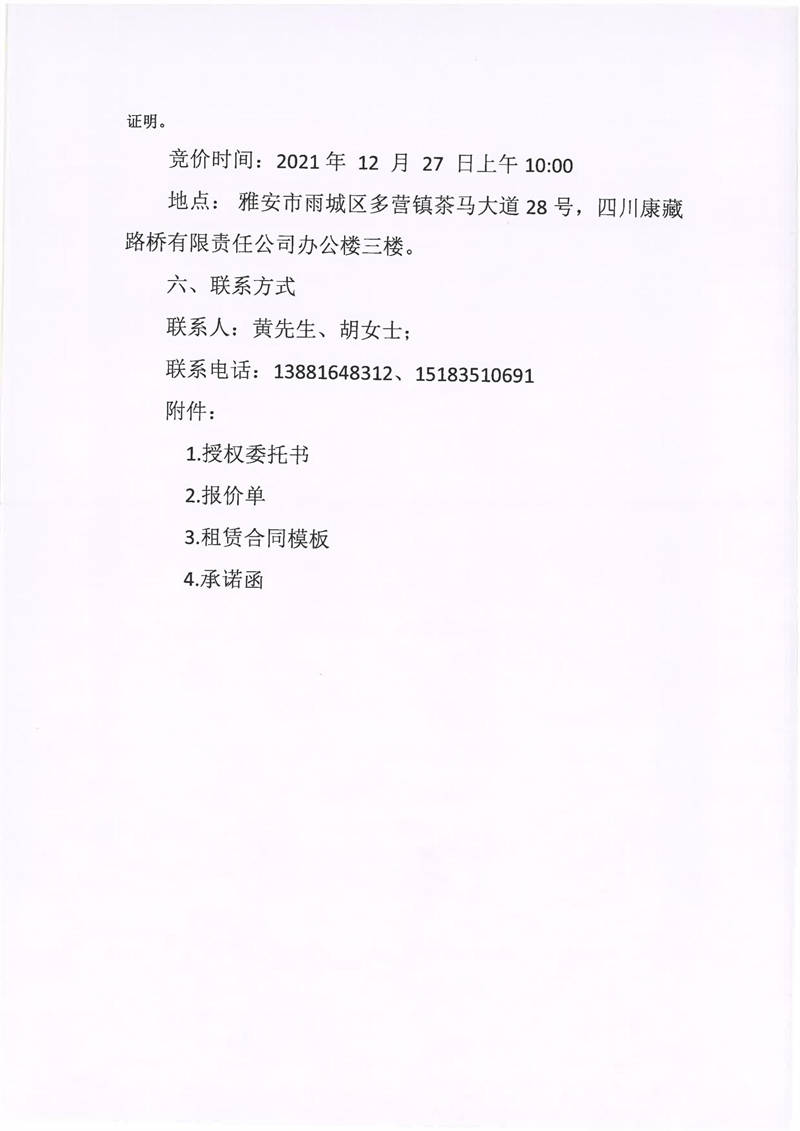 四川康藏路橋有限責(zé)任公司關(guān)于雅安市雨城區(qū)多營鎮(zhèn)茶馬大道28號(hào)三樓9間辦公用房招租的公告