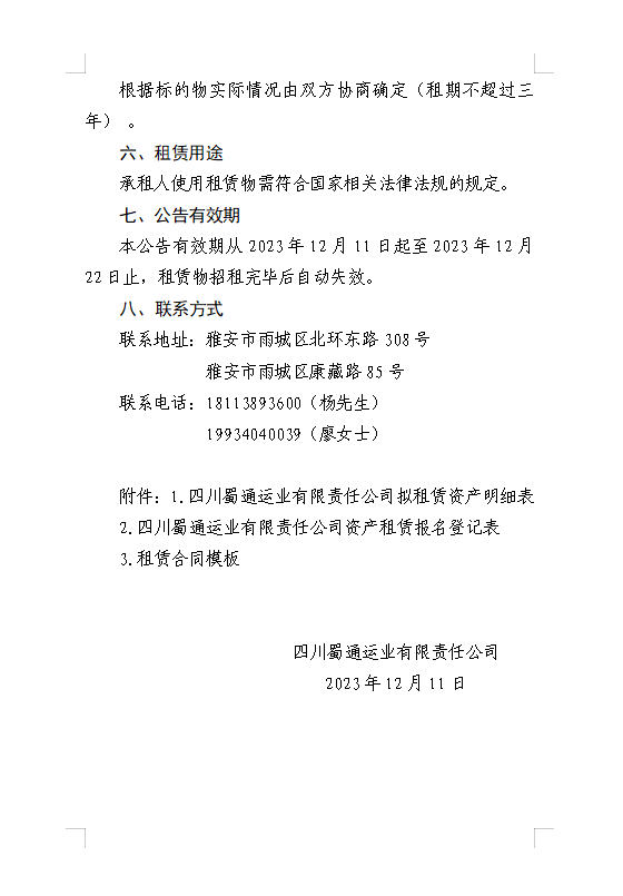 四川蜀通運(yùn)業(yè)有限責(zé)任公司關(guān)于康藏路85號(hào)辦公樓4、5、7樓資產(chǎn)租賃公告附件