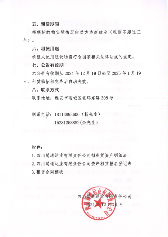 四川蜀通運(yùn)業(yè)郵箱責(zé)任公司關(guān)于蜀通公司九襄汽車站候車大廳兩處場地進(jìn)行掛網(wǎng)招租的公告附件