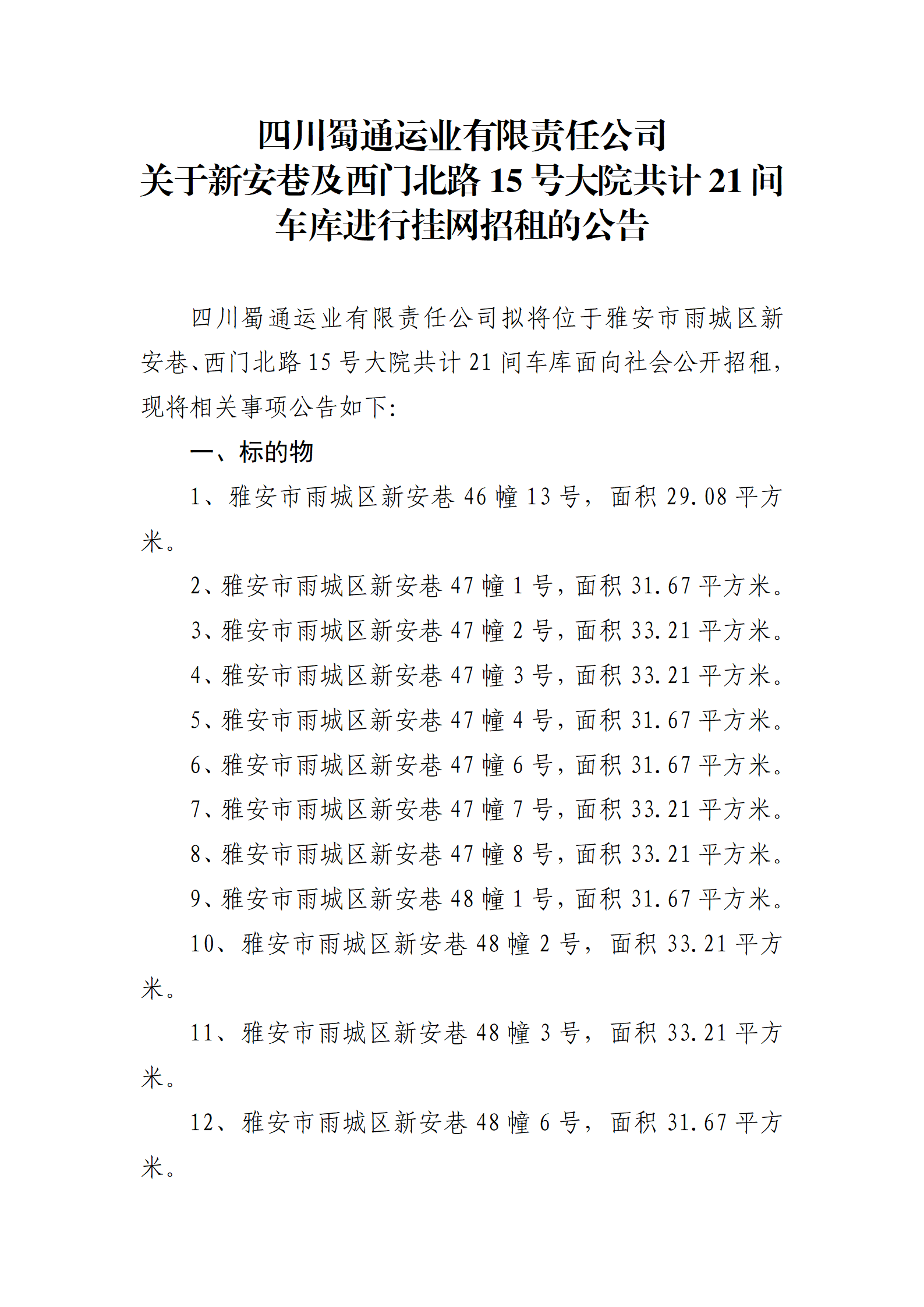 ËÄ´¨Êñͨß\(y¨´n)˜I(y¨¨)ÓÐÏÞØŸ(z¨¦)Èι«Ë¾ êP(gu¨¡n)ÓÚа²Ïï¼°Î÷éT±±Â·15Ì–´óÔº¹²Ó‹(j¨¬)21ég܇ŽìßM(j¨¬n)ÐÐ’ì¾W(w¨£ng)ÕÐ×âµÄ¹«¸æ