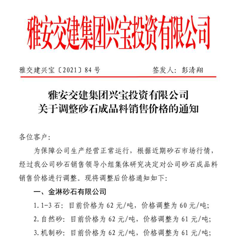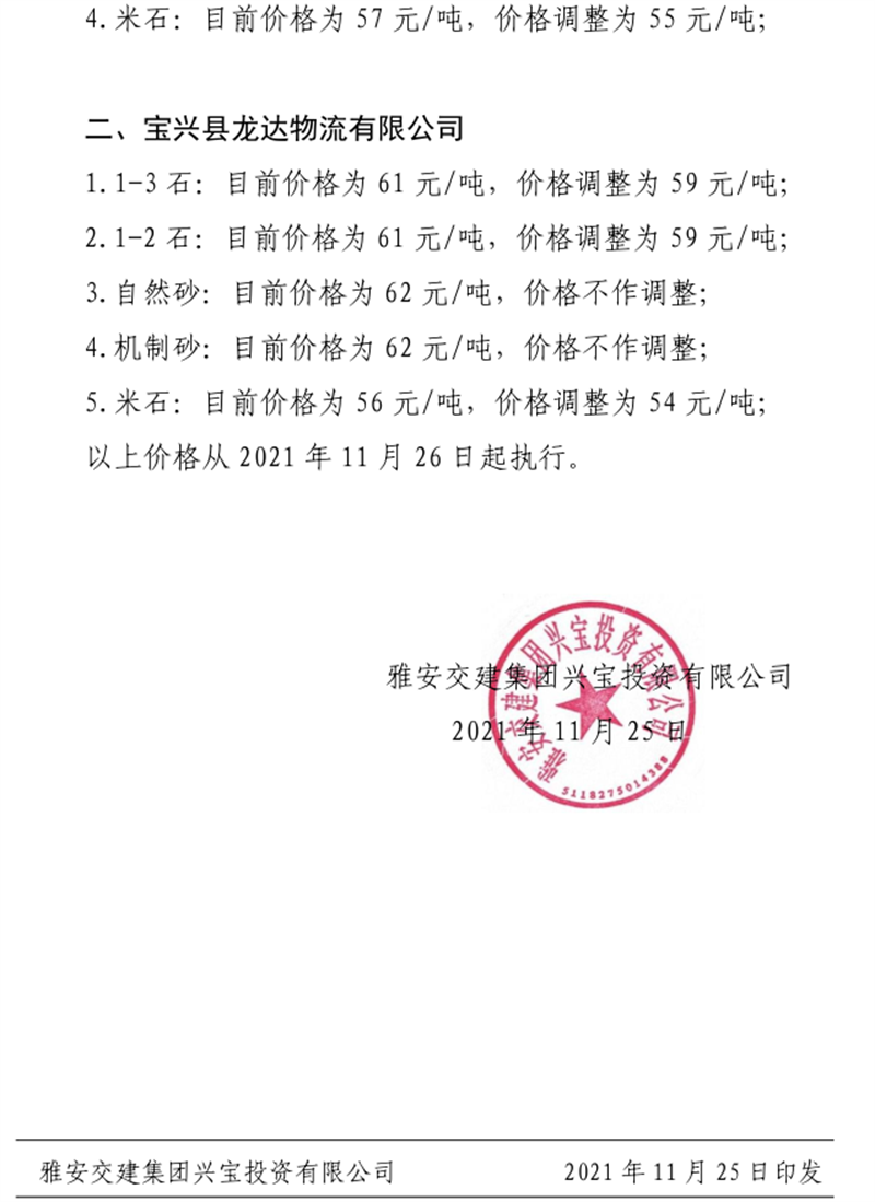 ÑŰ²½»½¨¼¯ˆF(tu¨¢n)µ¤Ê¯¹«Ë¾êP(gu¨¡n)ÓÚÕ{(di¨¤o)Õûɰʯ³ÉÆ·¹ÇÁÏäNÊÛƒr(ji¨¤)¸ñµÄ֪ͨ£¨2021.12.9£©